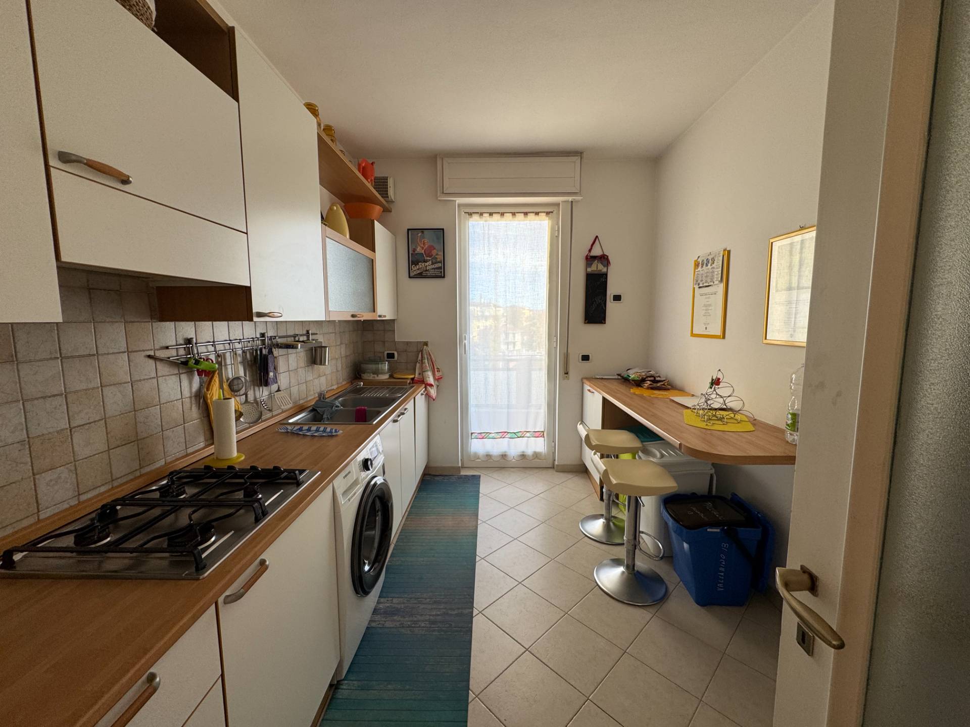La cucina, separata e abitabile, è funzionale e ben organizzata, perfettamente distinta dalla zona giorno per assicurare massima praticità nella gestione degli spazi.