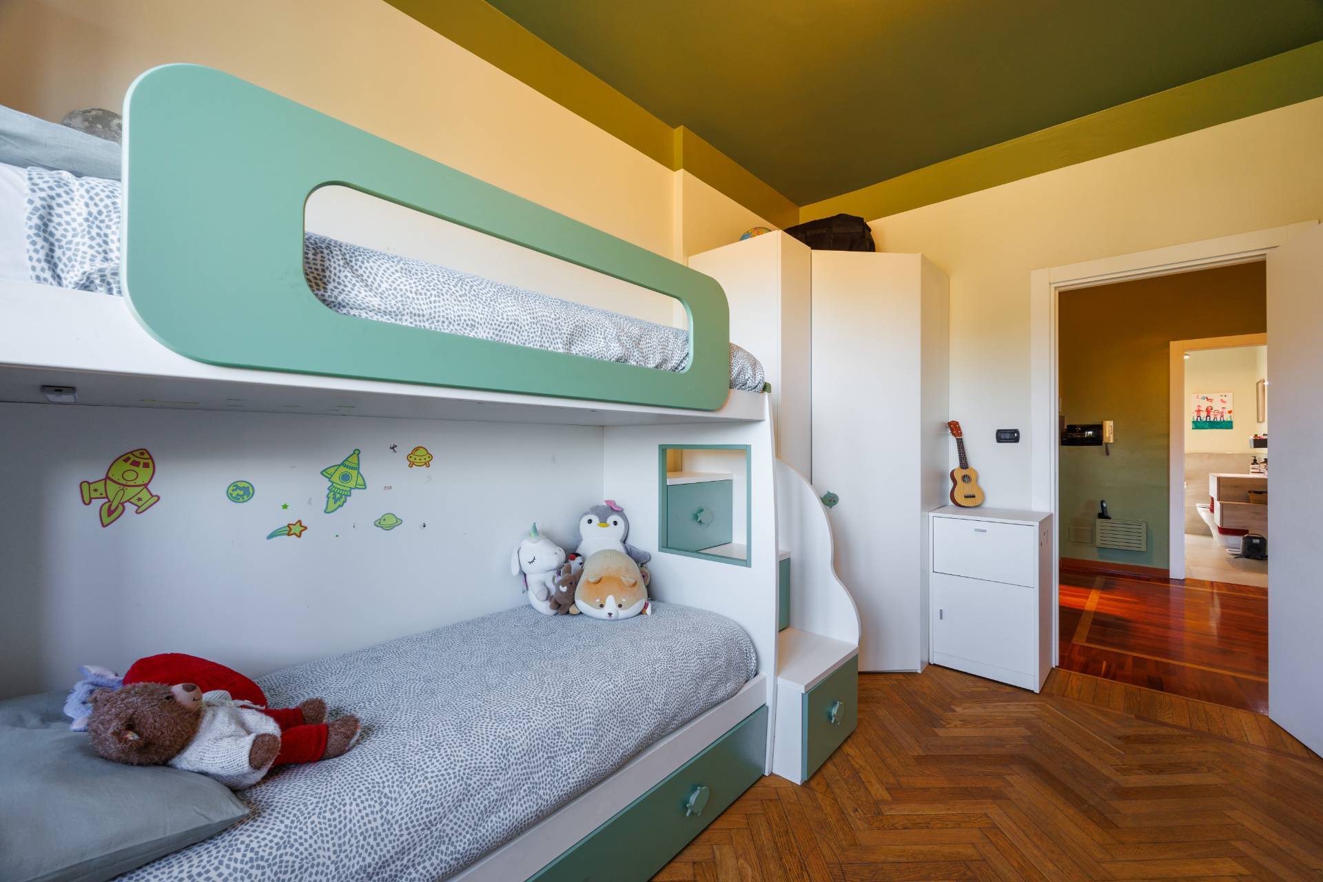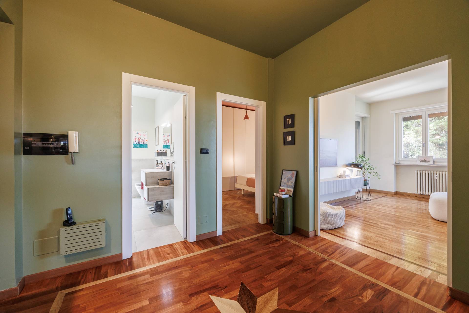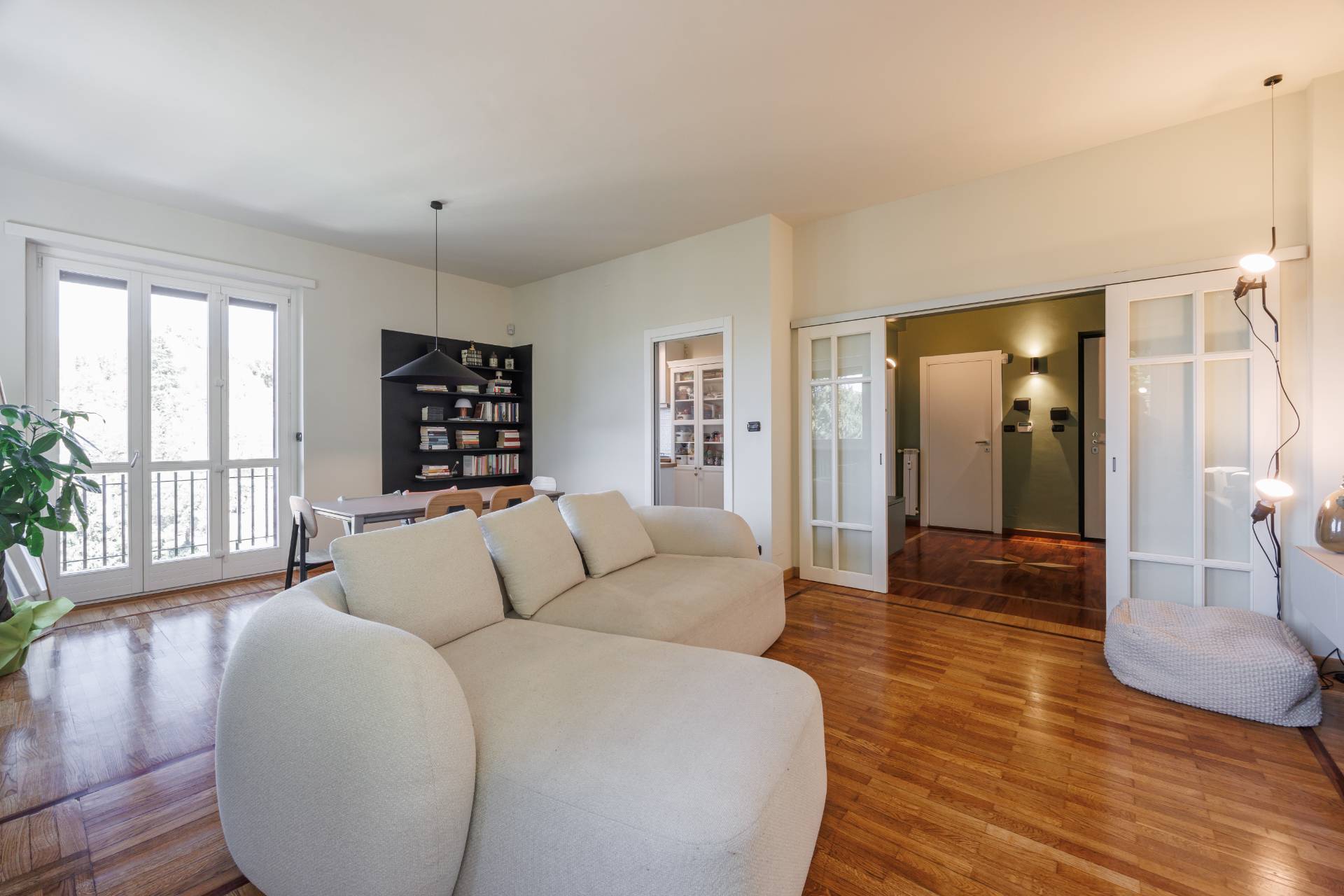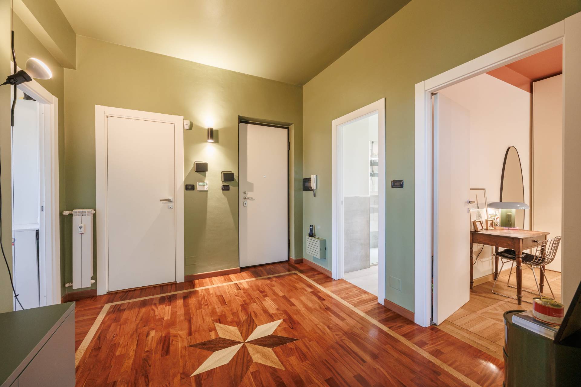 Di particolare pregio il recupero dei parquet che rivestono il pavimento in tutta la zona giorno e notte, garantendo continuità tra i vari ambienti.