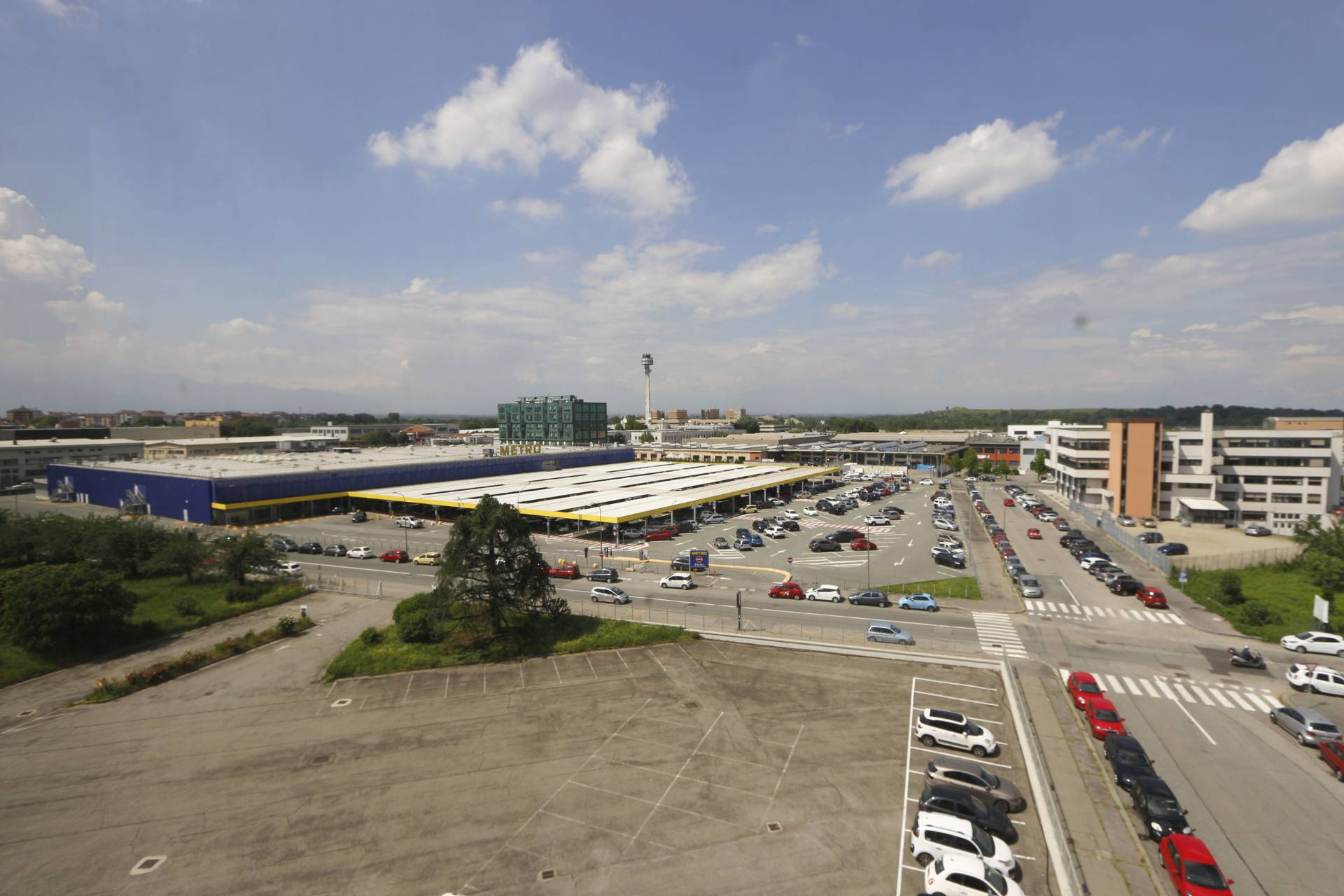 Involucro con curtain-wall in vetro e tamponature in cartongesso ad alta densità, rivestimento melaminico e profili per vetrazioni tecniche.